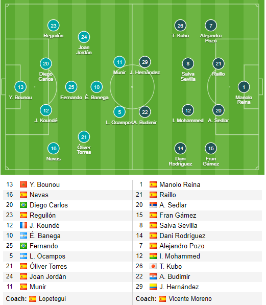 AEGoal.net cập nhật chính xác ĐỘI HÌNH RA SÂN trận Sevilla vs Mallorca diễn ra lúc 03h00 ngày 13/07 trong khuôn khổ giải VĐQG Tây Ban Nha.