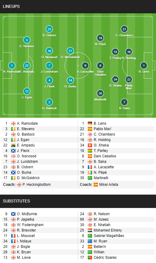 AEGoal cập nhật chính xác ĐỘI HÌNH RA SÂN trận Sheffield Utd vs Arsenal diễn ra lúc 01h00 ngày 12/4 trong khuôn khổ giải Ngoại hạng Anh.