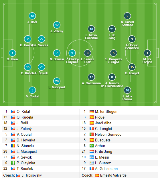AEGoal.net cập nhật chính xác ĐỘI HÌNH RA SÂN trận Slavia Praha vs Barcelona diễn ra lúc 02h00 ngày 24/10 trong khuôn khổ Bảng F - UEFA Champions League.