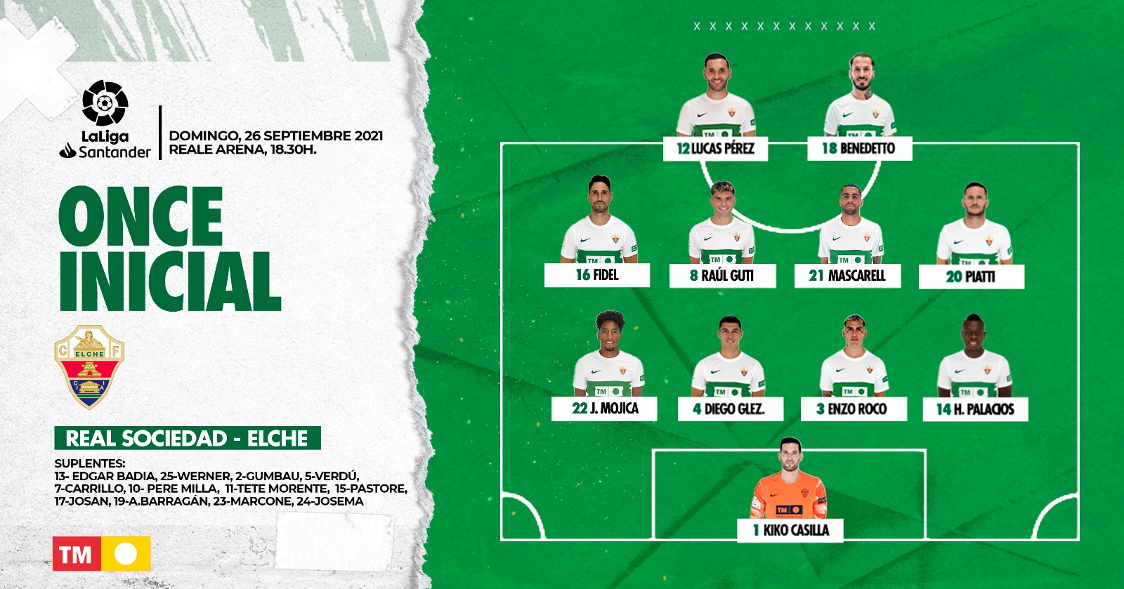 AEGoal cập nhật chính xác ĐỘI HÌNH RA SÂN trận Sociedad vs Elche diễn ra lúc 23h30 ngày 26/9 trong khuôn khổ giải VĐQG Tây Ban Nha.