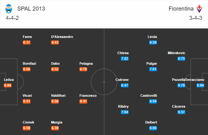 AEGoal.net cập nhật chính xác ĐỘI HÌNH RA SÂN trận Spal vs Fiorentina diễn ra lúc 23h00 ngày 02/8 trong khuôn khổ Vòng 38 - VĐQG Italia.