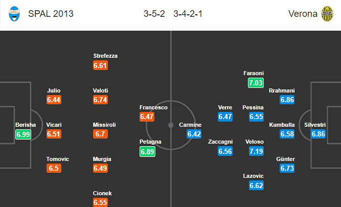 SPAL: Berisha; Tomovic, Vicari, Igor; Cionek, Valoti, Missiroli, Kurtic, Strefezza; Paloschi, Petagna
