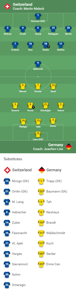 AEGoal.net cập nhật chính xác ĐỘI HÌNH RA SÂN trận Thụy Sĩ vs Đức diễn ra lúc 01h45 ngày 7/9 trong khuôn khổ UEFA Nations League.