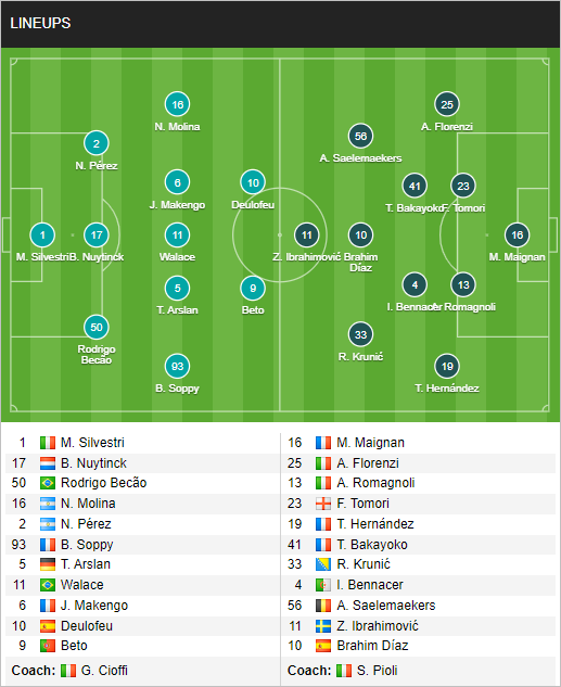 AEGoal cập nhật chính xác ĐỘI HÌNH RA SÂN trận Udinese vs AC Milan diễn ra lúc 02h45 ngày 12/12 trong khuôn khổ giải VĐQG Italia.