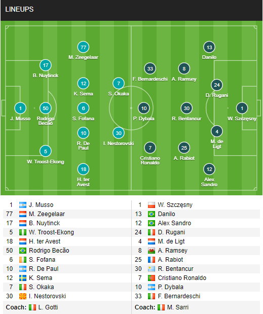 - Ở lượt đi, Juventus đánh bại Udinese với tỷ số 3-1 tại sân nhà.