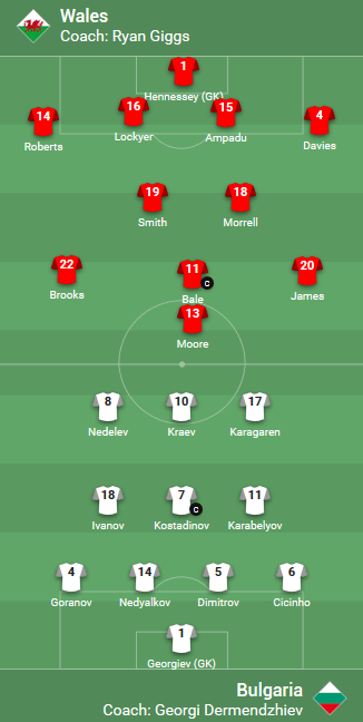 AEGoal.net cập nhật chính xác ĐỘI HÌNH RA SÂN trận Wales vs Bulgaria diễn ra lúc 20h00 ngày 6/9 trong khuôn khổ UEFA Nations League.