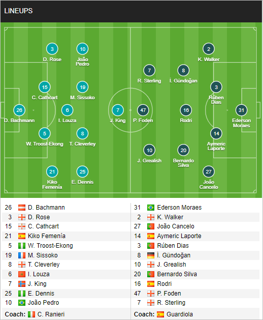 - Trận đấu: Watford vs Man City (Vòng 15 - Ngoại hạng Anh)