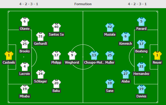 - Bayern Munich (4-2-3-1): Neuer (c) - Pavard, Boateng, Alaba, Davies - Kimmich, Goretzka - Sane, Müller, Coman - Choupo-Moting