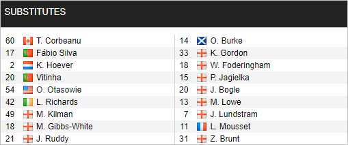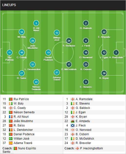 - Sheffield Utd: Basham, O'Connell, Robinson, Rodwell, Billy Sharp, McBurnie chấn thương; Berge vắng mặt còn Fleck đau nhẹ.