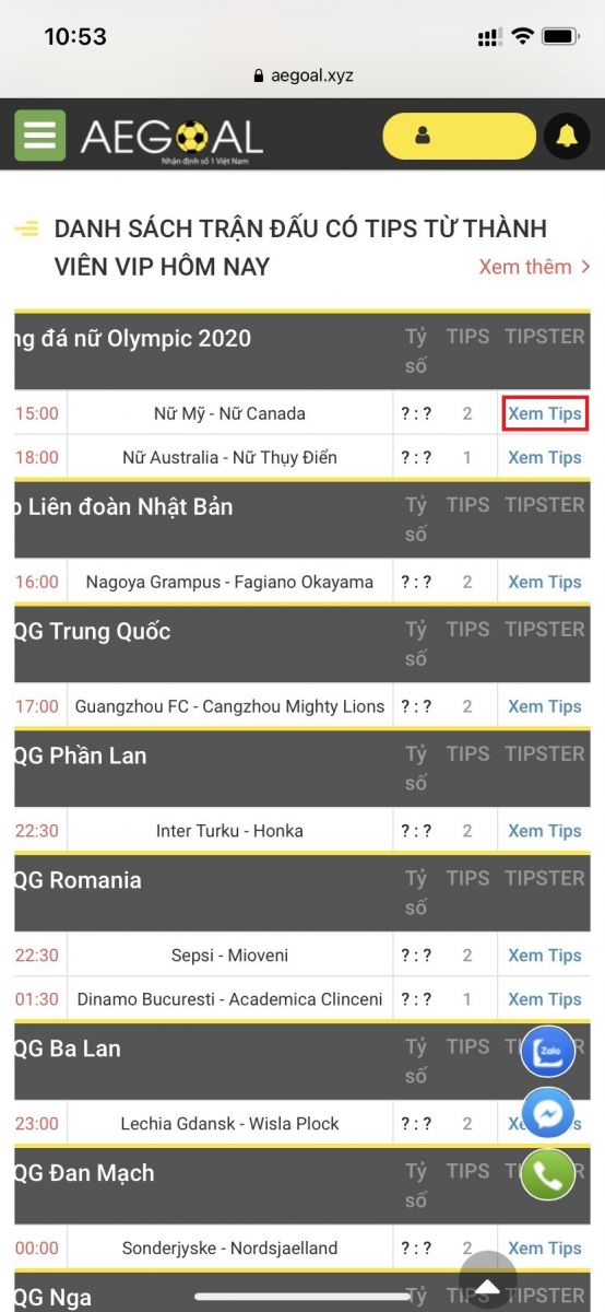 Xem ngay danh sách các trận đấu được tư vấn đc quyền cho thành viên VIP của AEGoal.