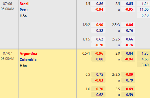 Lịch thi đấu và tỷ lệ bán kết Copa America 2021