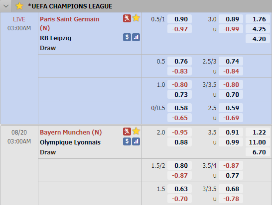 Cập nhật tỷ lệ châu Á vòng bán kết UEFA Champions League