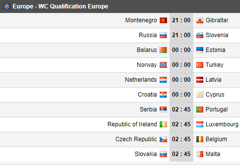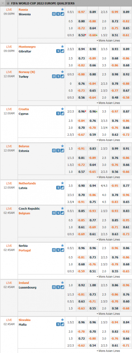 Tỷ lệ châu Á các trận vòng loại WC 2022 khu vực châu Âu diễn ra đêm 27, rạng sáng ngày 28/3: