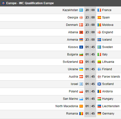 Cùng AEGOAL cập nhật lịch thi đấu và tỷ lệ châu Á của lượt trận thứ 2 vòng loại World Cúp 2022 khu vực châu Âu