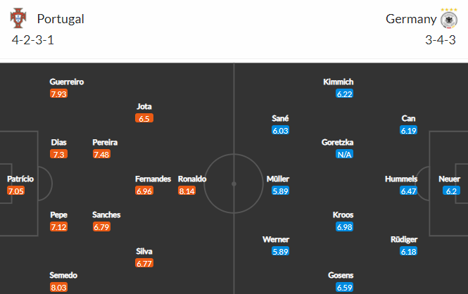 - Không có cầu thủ nào của Đức đá ở giải VĐQG Bồ Đào Nha nhưng bên phía Bồ có 2 cái tên đang thi đấu tại Bundesliga là Raphaël Guerreiro (Dortmund) và André Silva (Eintracht Frankfurt).