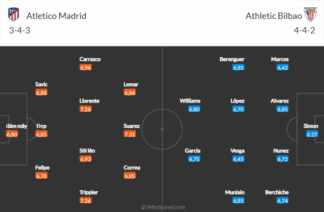 Thông tin lực lượng và đội hình dự kiến trận Atletico Madrid vs Bilbao (01h00)