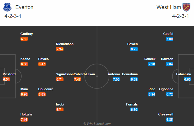 Thông tin lực lượng và đội hình dự kiến trận Everton vs West Ham (00h30)