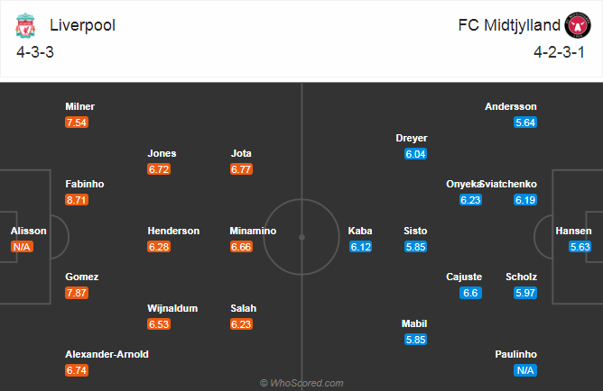 Thông tin lực lượng và đội hình dự kiến trận Liverpool vs Midtjylland (03h00)