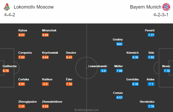 Thông tin lực lượng và đội hình dự kiến trận Lokomotiv Moscow vs Bayern Munich (00h55)