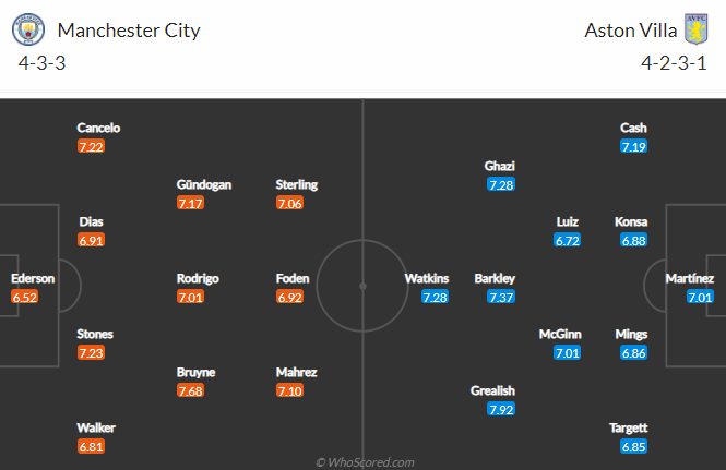 Thông tin lực lượng và đội hình dự kiến trận Man City vs Aston Villa (01h00)