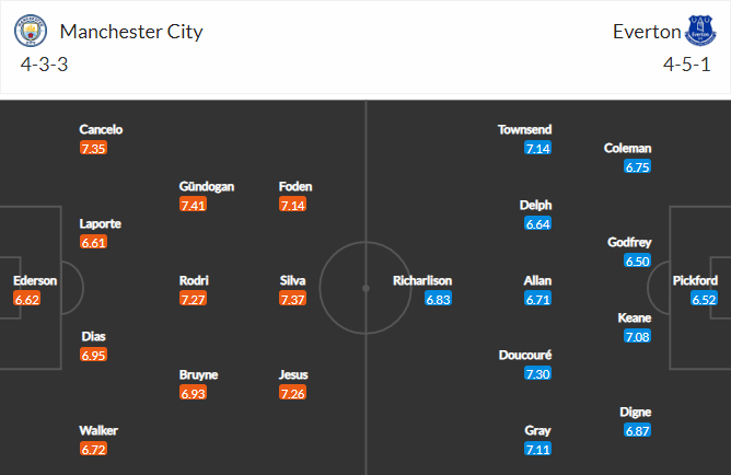 Thông tin lực lượng và đội hình dự kiến trận Man City vs Everton (21h00 ngày 21/11)