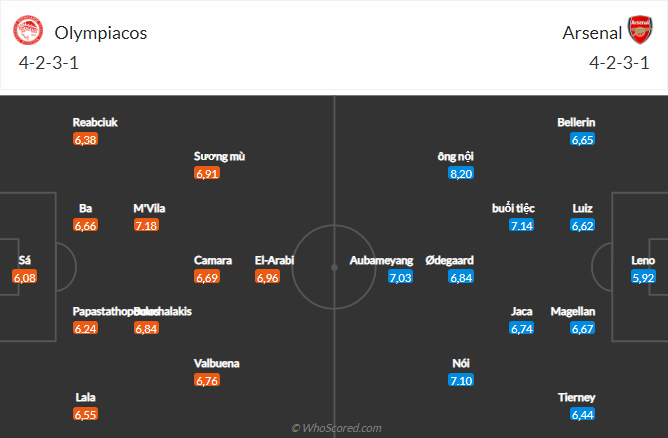 Thông tin lực lượng và đội hình dự kiến trận Olympiacos vs Arsenal (03h00)