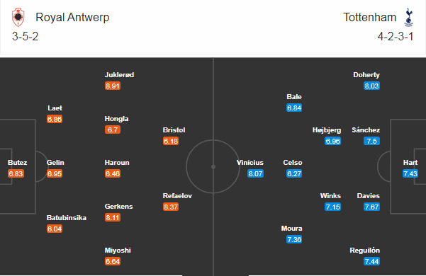 Thông tin lực lượng và đội hình dự kiến trận Royal Antwerp vs Tottenham (00h55)