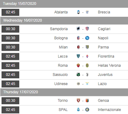 Lịch thi đầu vòng 33 và 34 giải VĐQG Italia - Serie A