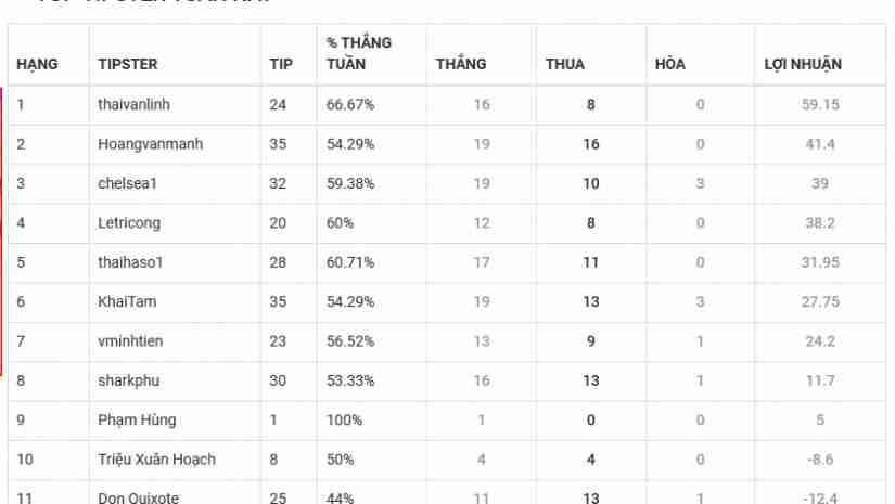 hoangvanmanh tỏ ra xuất sắc với các dự đoán chính xác