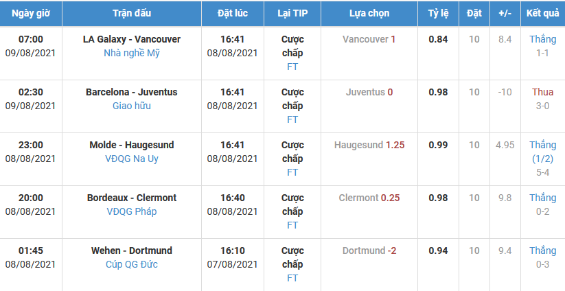 Bảng xếp hạng vì thế liên tục thay đổi qua từng ngày. Với 4 trong 5 kèo cuối cùng giành chiến thắng, thành viên kỳ cựu thaivanlinh đã cán đích ở vị trí đầu tiên. Thứ hạng cao nhất tuần 1 tháng 8 đã giúp thaivanlinh nhận được 1 tuần VIP cộng trực tiếp vào tài khoản thành viên của mình.