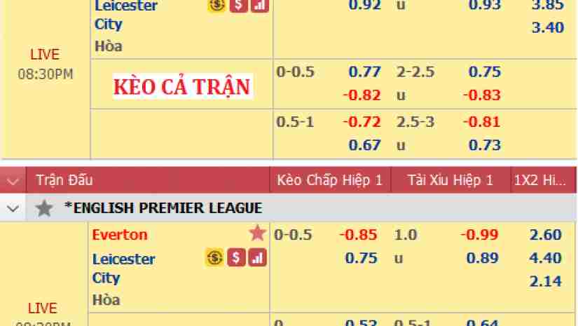 Kèo bóng đá trực tiếp